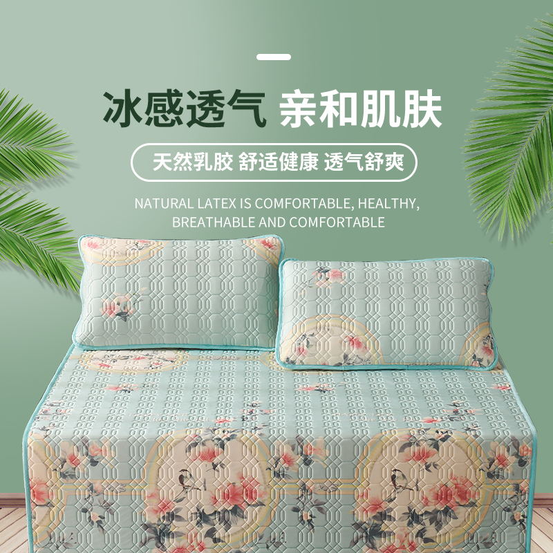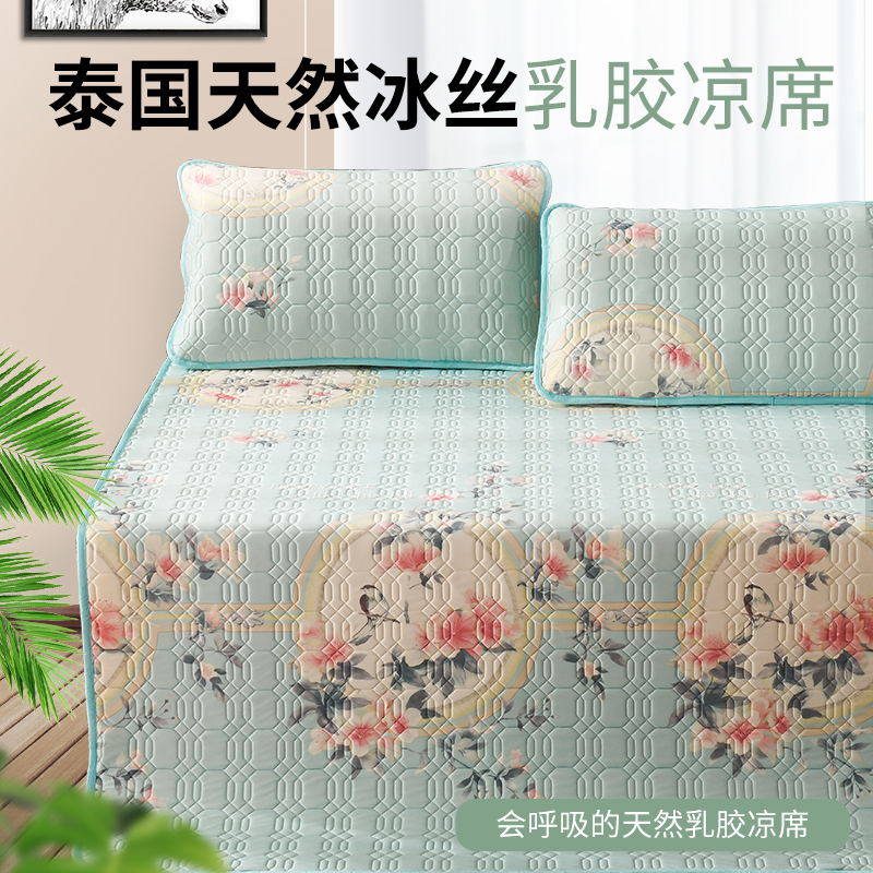TAIHI泰嗨天然乳胶冰丝凉席三件套鹊上枝头绿色(适合1.8米床)【天然乳胶/绿色】 |