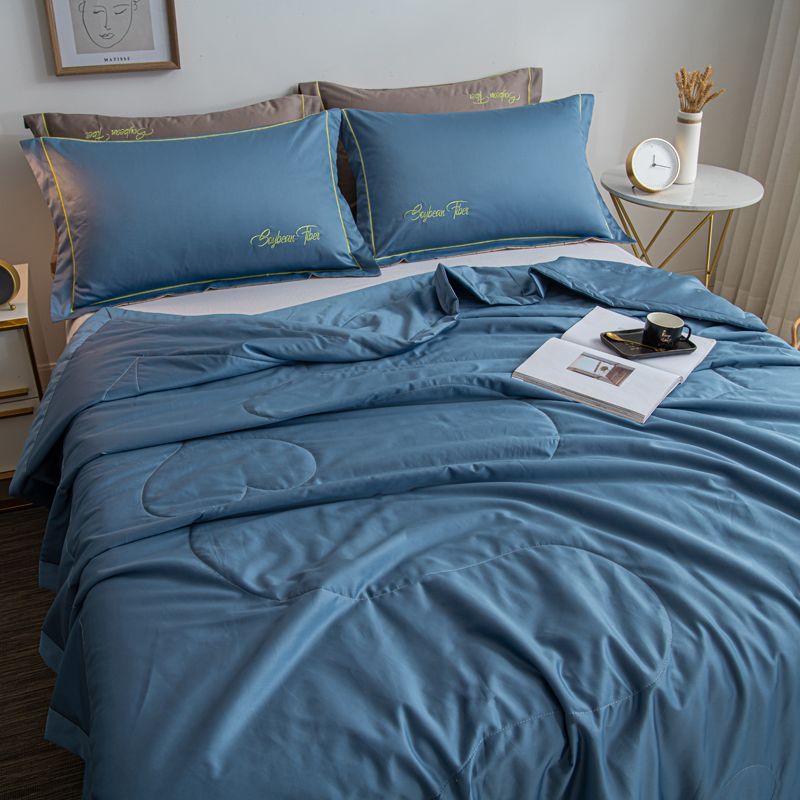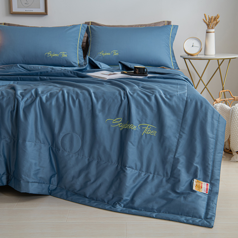 纯色刺绣水洗冰丝大豆纤维夏被【水洗冰丝(聚酯纤维)填充大豆纤维/雾霾蓝】 |