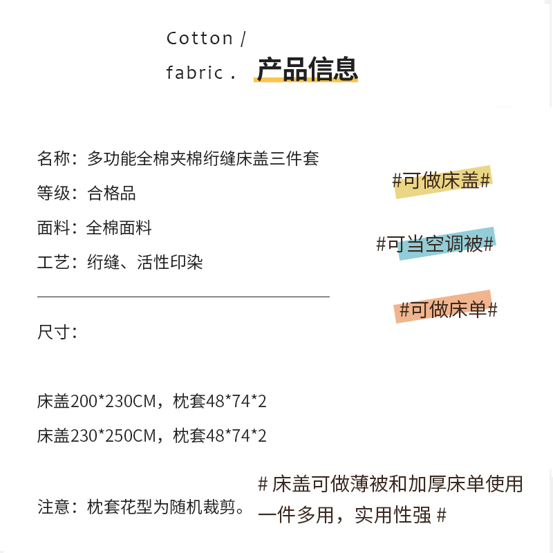 【三层复合】全棉夹棉绗缝床盖三件套【全棉/开心萝卜】 |