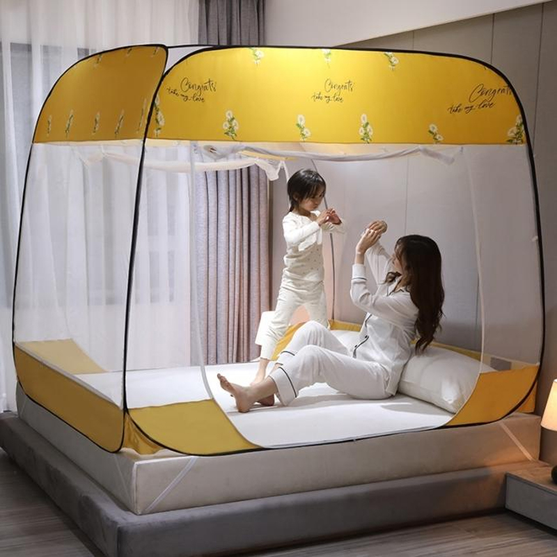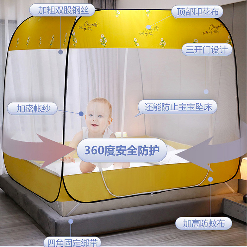 大顶部印花款免安装蚊帐【面料聚酯纤维支架包塑钢丝/小雏菊嫩黄】 |