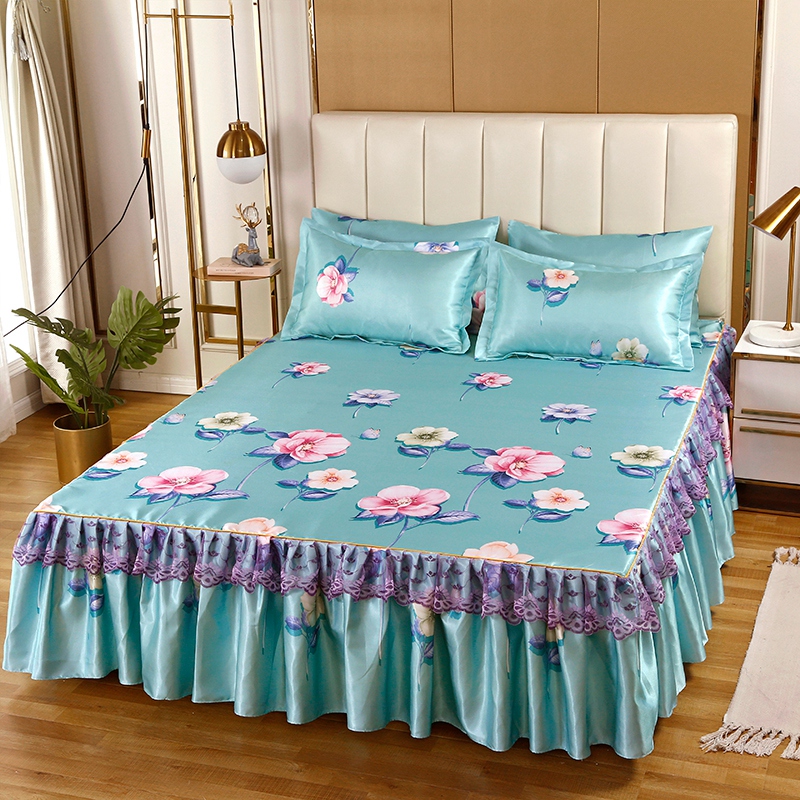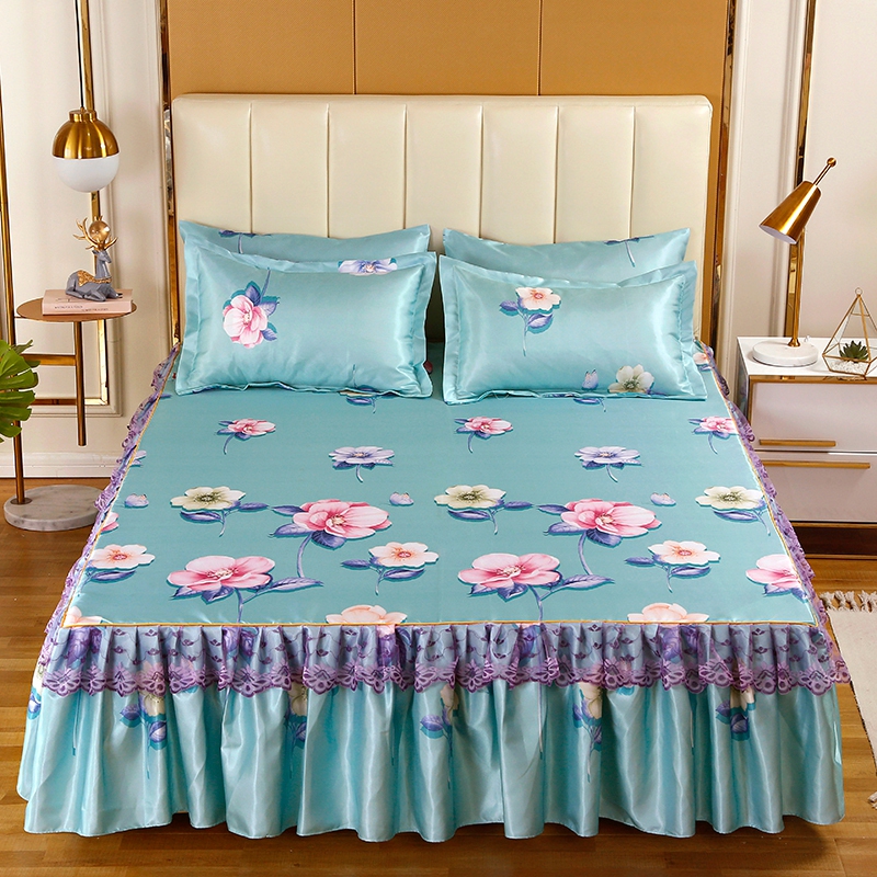 印花蕾丝床裙款冰丝席凉席三件套【冰丝(聚酯纤维)/梦妆花颜】 |