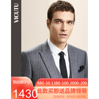 威可多VICUTU男士套装西服上衣羊毛混纺灰色双排扣商务西装男VRS18312949 中灰 175/96B |