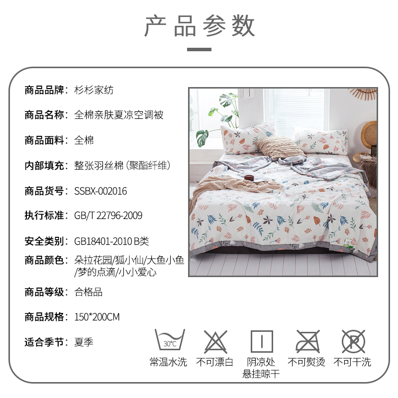 全棉亲肤夏凉空调被【面料:全棉填充:整张羽丝棉(聚酯纤维)/颜色自选】 |