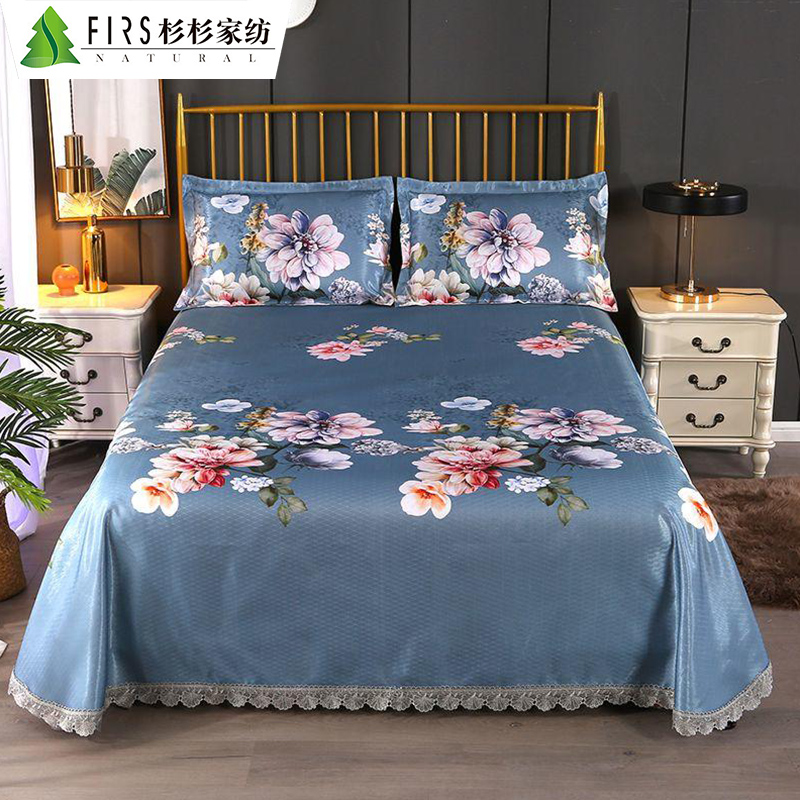 蕾丝花边印花冰丝凉席三件套【聚酯纤维/花间集-灰】 |