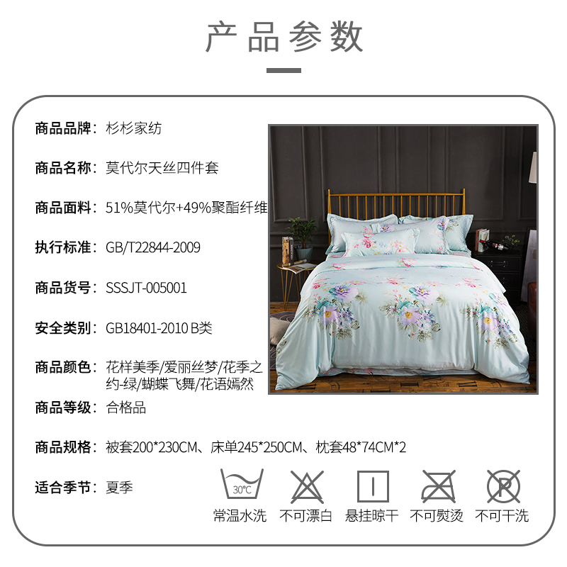 莫代尔天丝四件套【51%莫代尔+49%聚酯纤维/被套200*230床单245*250枕套48*74*2】 |