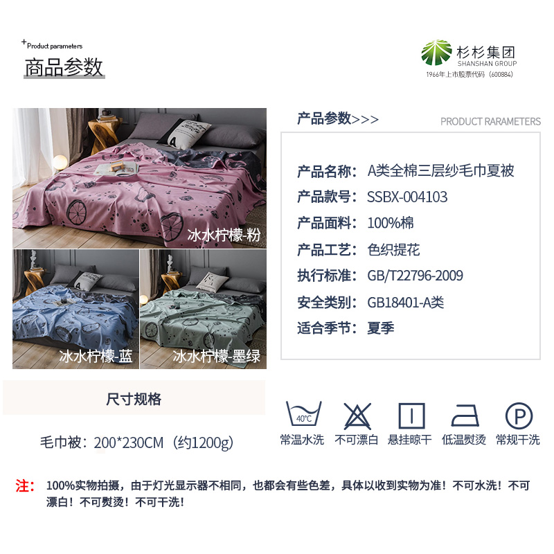 全棉高档三层纱毛巾被【全棉/颜色自选】 |