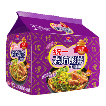 统一 方便面 老坛酸菜牛肉味面 五连包 即食面 |