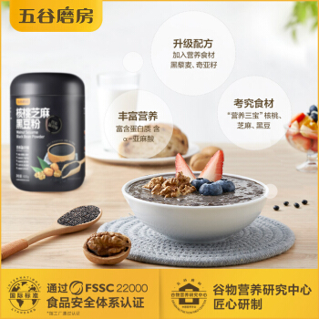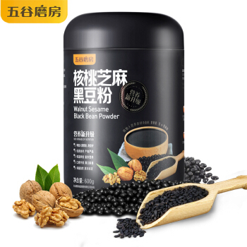五谷磨房早餐 核桃芝麻黑豆粉奇亚籽黑藜麦五谷杂粮代餐粉黑芝麻糊黑芝麻粉600g |