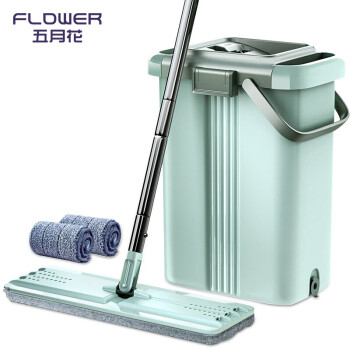 五月花 特大号刮刮乐免手洗38cm平板拖把 干湿两用拖布 家用墩布网红懒人地拖 2块配布PB02 |