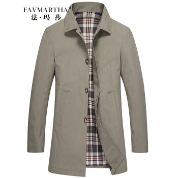法玛莎品牌中长款风衣男秋你新款商务休闲爸爸修身格子外套 浅灰6627 170/M |