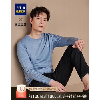 HLA海澜之家简约绣花款长袖针织衫圆领净色针织衫男HNZAD3R062A 浅蓝62 175/92A/L |