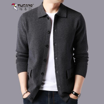 啄木鸟中年男士针织衫薄款上衣春秋新款毛衣开衫时尚青年男装翻领打底衫爸爸装冬装纯色加绒加厚毛线衣外套 灰色 175/115 |