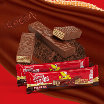 雀巢(Nestle) 脆脆鲨 休闲零食 威化饼干 巧克力口味640g(24*20g+赠8*20g) |