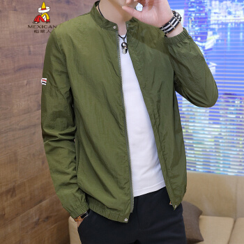 稻草人防晒衣男夏季新品超薄款透气防紫外线皮肤衣男士韩版潮流帅气风衣夹克外套户外连帽防晒服男 军绿色 3XL |