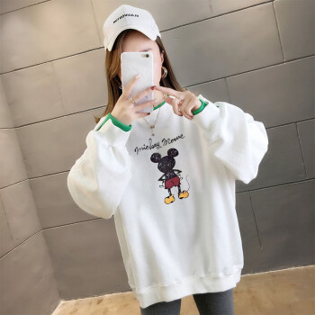 北极绒卫衣女春秋季新品潮流时尚卡通印花圆领卫衣女休闲宽松套头长袖假两件上衣女2505 白色 请拍正确尺码 |