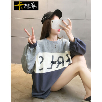 卡赫希卫衣女春秋季新款慵懒风百搭休闲学生上衣女时尚宽松圆领长袖拼接中长款女卫衣5006 灰色 请拍正确尺码 |