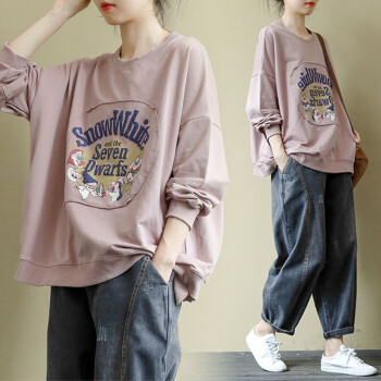 卫衣女宽松韩版学生文艺长袖秋冬季加绒休闲印花圆领套头上衣外套 粉紫色 XL110-125斤 |