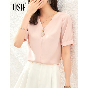 OSA欧莎气质短袖雪纺衫女遮肚子新款夏季欧洲站洋气小衫时尚上衣 粉色 S |