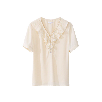 OSA女士短袖雪纺衫夏季新款欧洲站时尚洋气遮肚子小衫上衣 浅杏色 S |