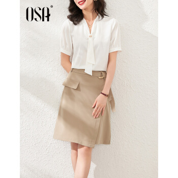 OSA欧莎白色雪纺衫女时尚夏装新款v领洋气小衫时尚遮肚子短袖上衣 白色 S |