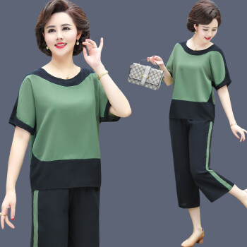 涂蝶幽 妈妈夏装运动服套装两件套新款洋气减龄中老年女装人短袖上衣服女 红色 2XL (105-115斤) |