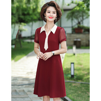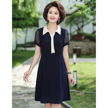 晳馥香中老年女装雪纺连衣裙女带领裙子夏季短袖翻领纯色40-50岁中年妈妈夏装 藏青 (请拍对应尺码) |