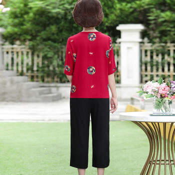 南极人 中老年女装夏季新款短袖妈妈套装洋气减龄棉麻两件套 红色套装 XXXL(建议体重120-135斤) |