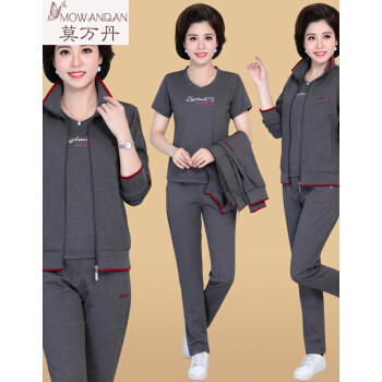 莫万丹高端新品中老年女装妈妈装休闲运动套装女秋装新款中年女装春秋运动服三件套YWD2001 ASTS宝蓝 3XL【建议130-140斤】 |