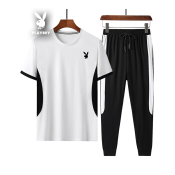 短袖t恤男纯色运动2套装棉棉夏季新款韩版宽松翻领潮流T恤衫大码休闲衣服男装九分裤 黑色422 XL |
