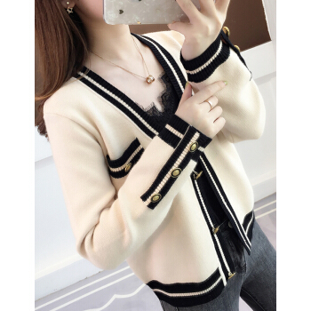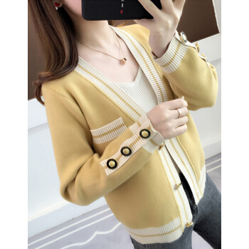 婪澈针织衫女秋冬女装新款韩版修身毛衣女显瘦洋气百搭开衫上衣女长袖 绿色 L |