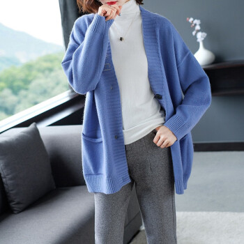纤丝鸟 TINSINO 针织衫女秋冬新款韩版宽松刺绣针织开衫女休闲毛衣通勤毛线衣外套 蓝色 请拍正确尺码 |