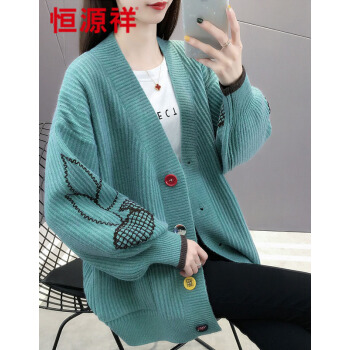 恒源祥针织衫女秋季新品时尚慵懒风外搭开衫女灯笼袖刺绣针织衫女韩版宽松毛衣外套女0215 湖蓝 请拍正确尺码 |
