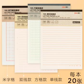 得力信纸本信筏报告纸作文单线双线行方格400格文稿草稿小学生用16k申请书专用稿纸横线横格考试原稿报 单线16k/6本共120张 |