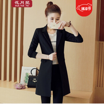 花月斐小西装女中长款秋季新款西服时尚简约OL通勤休闲长袖修身中长款西装小外套1701 黑色 L |