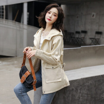 留和 短外套秋装新款女装时尚休闲连帽女士风衣外套女F6607 米色 L |