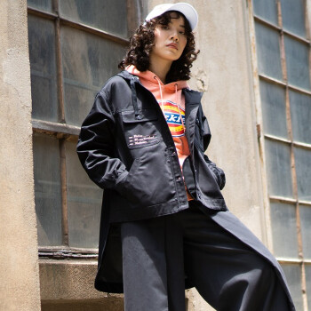 Dickies字母印花连帽夹克 秋季新品女式多袋燕尾薄外套DK008106 黑色 L |