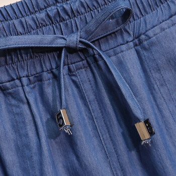 木棉林加肥加大码女装夏装新款冰丝五分大码牛仔短裤松紧腰薄宽松阔腿清凉胖MM热裤HYA47 蓝色 5XL(建议160-200斤) |