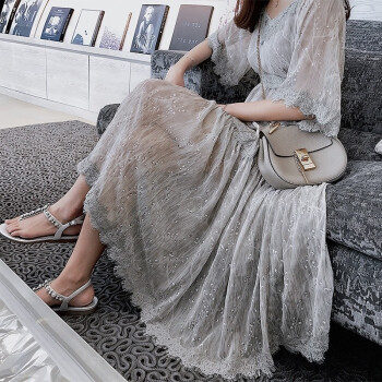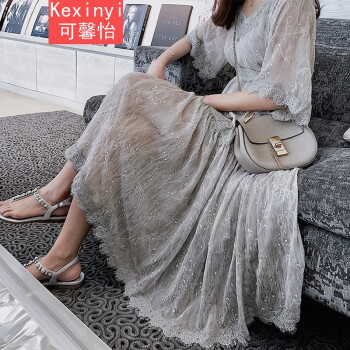 可馨怡 胖妹妹夏装胖人女装新款显瘦遮肚子连衣裙大码女装胖mm雪纺仙女裙200斤 灰色 XXXXL(建议150-175斤左右) |