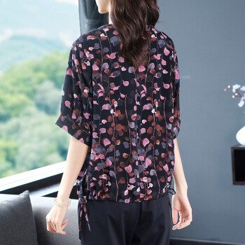 木棉林胖妹妹mm短袖上衣加大码女装新款夏装洋气印花宽松遮肚子显瘦T恤Z202729 黑色 3XL建议160-180斤 |