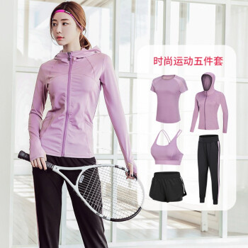 VACK 瑜伽服女运动套装夏季新款专业运动跑步健身房初学者速干衣网红夏健身服运动服五件套 豆沙紫(五件套) XL |