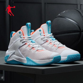 乔丹男鞋篮球鞋夏季款防滑耐磨透气实战高帮运动鞋球鞋户外战靴男 白色/天使蓝-110 42 |