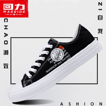 回力男鞋帆布鞋男春季新款时尚韩版板鞋潮流低帮系带休闲鞋学生运动鞋 黑色 42 |