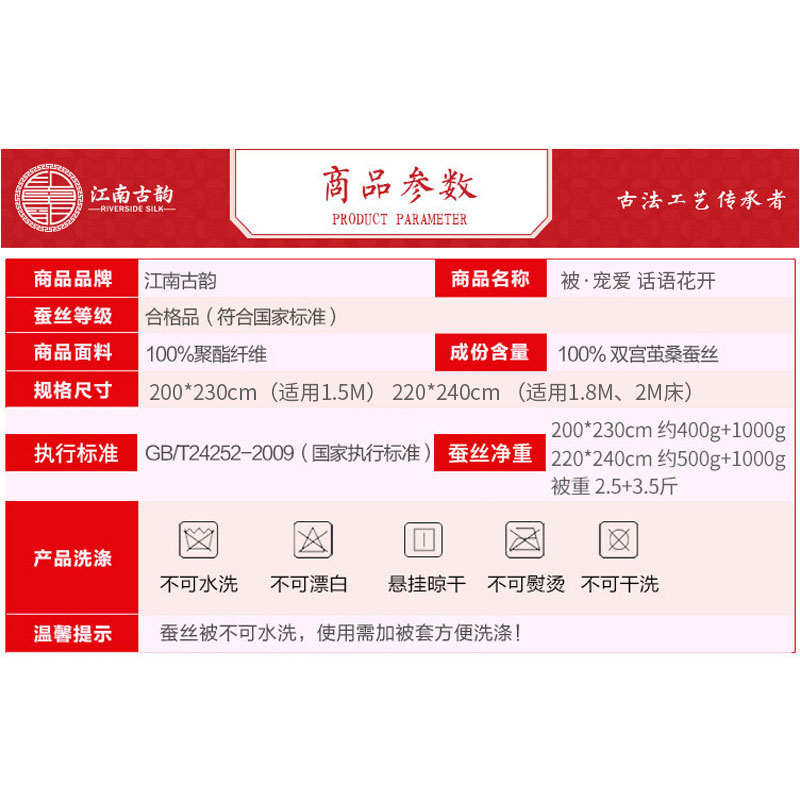 【超值单品】100%桑蚕丝花语花开子母被2.5+3.5斤【100%桑蚕丝/蓝色】 |