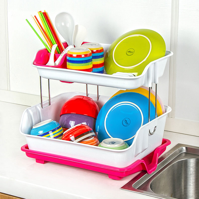 双层沥水碗碟架【PP+不锈钢/枚红色】 |