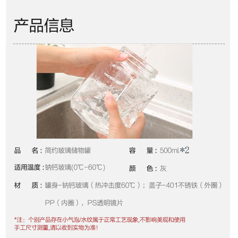 简约玻璃收纳罐酵素罐五谷杂粮收纳盒零食储物罐【玻璃/灰色】 |
