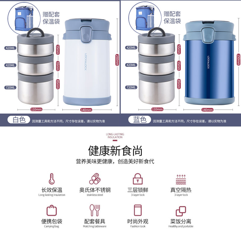 2000ML便携背带不锈钢分隔保温饭盒【304不锈钢/颜色可选】 |