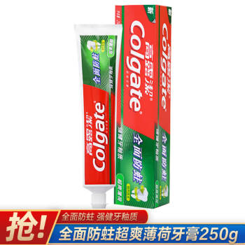 高露洁(Colgate) 全面防蛀超爽薄荷牙膏 250g 清新口气 强健牙釉质(新老包装随机发) |