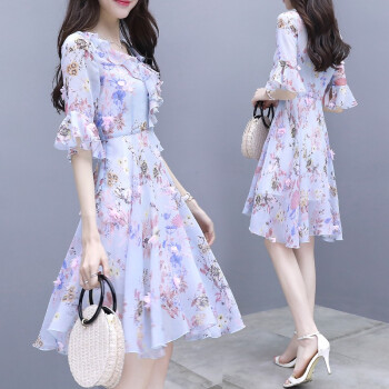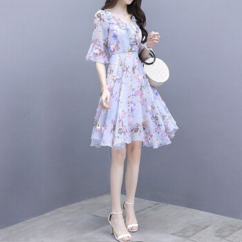 莱倪晟纳雪纺连衣裙女装夏季新款韩版中长款宽松显瘦性感沙滩裙子女潮 蓝色 请拍正确尺码 |