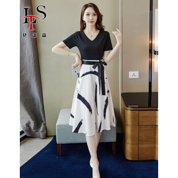 佬唐森女装雪纺连衣裙女夏季新款碎花雪纺连衣裙修身显瘦气质中长裙子 黑色 请拍正确尺码 |