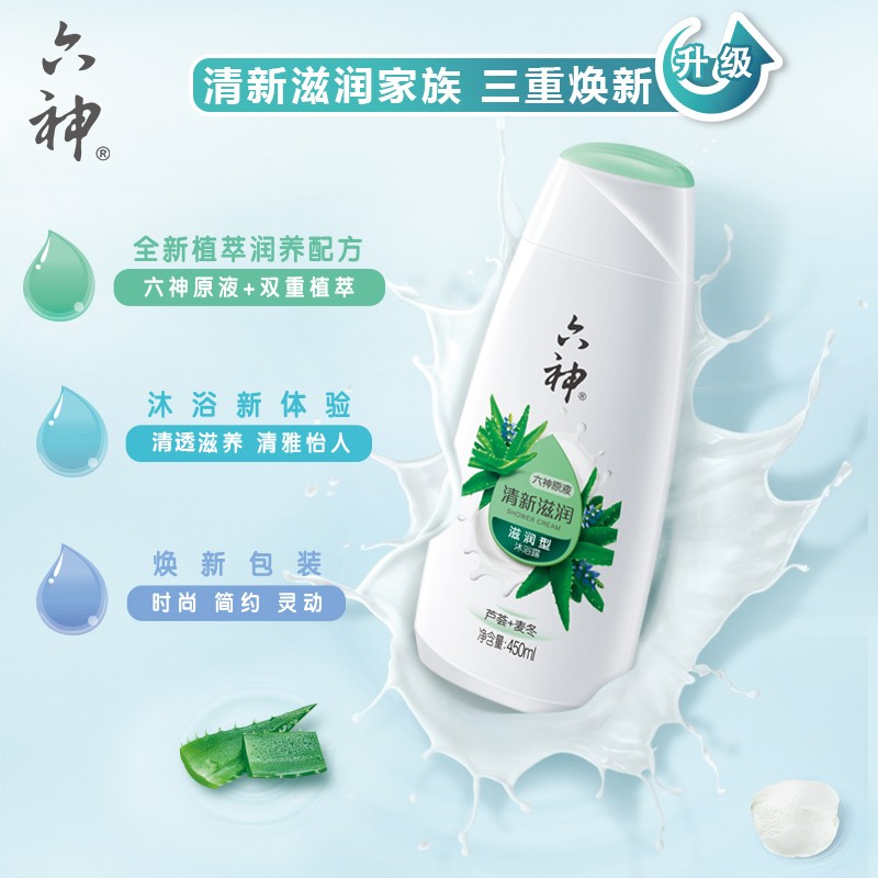 六神沐浴露清新滋润芦荟450g |